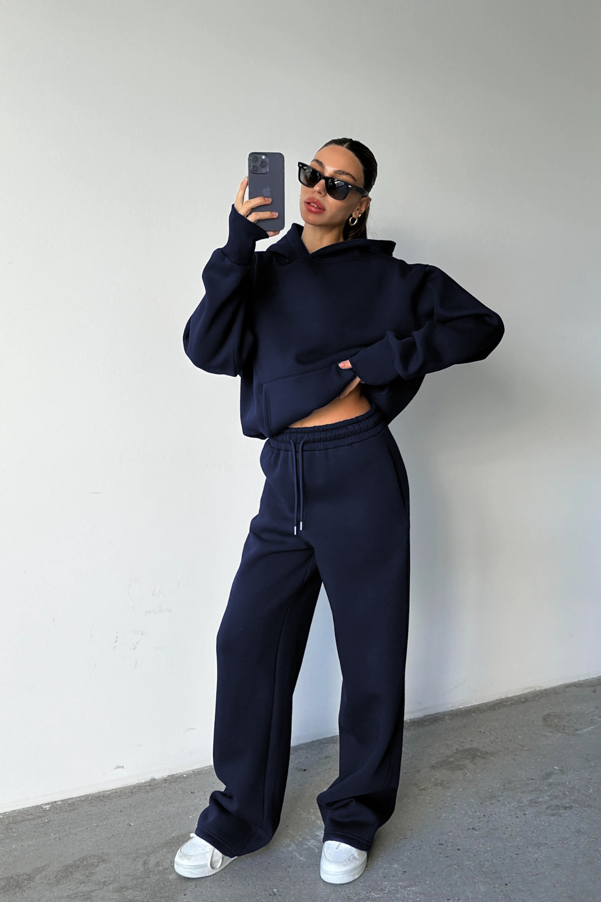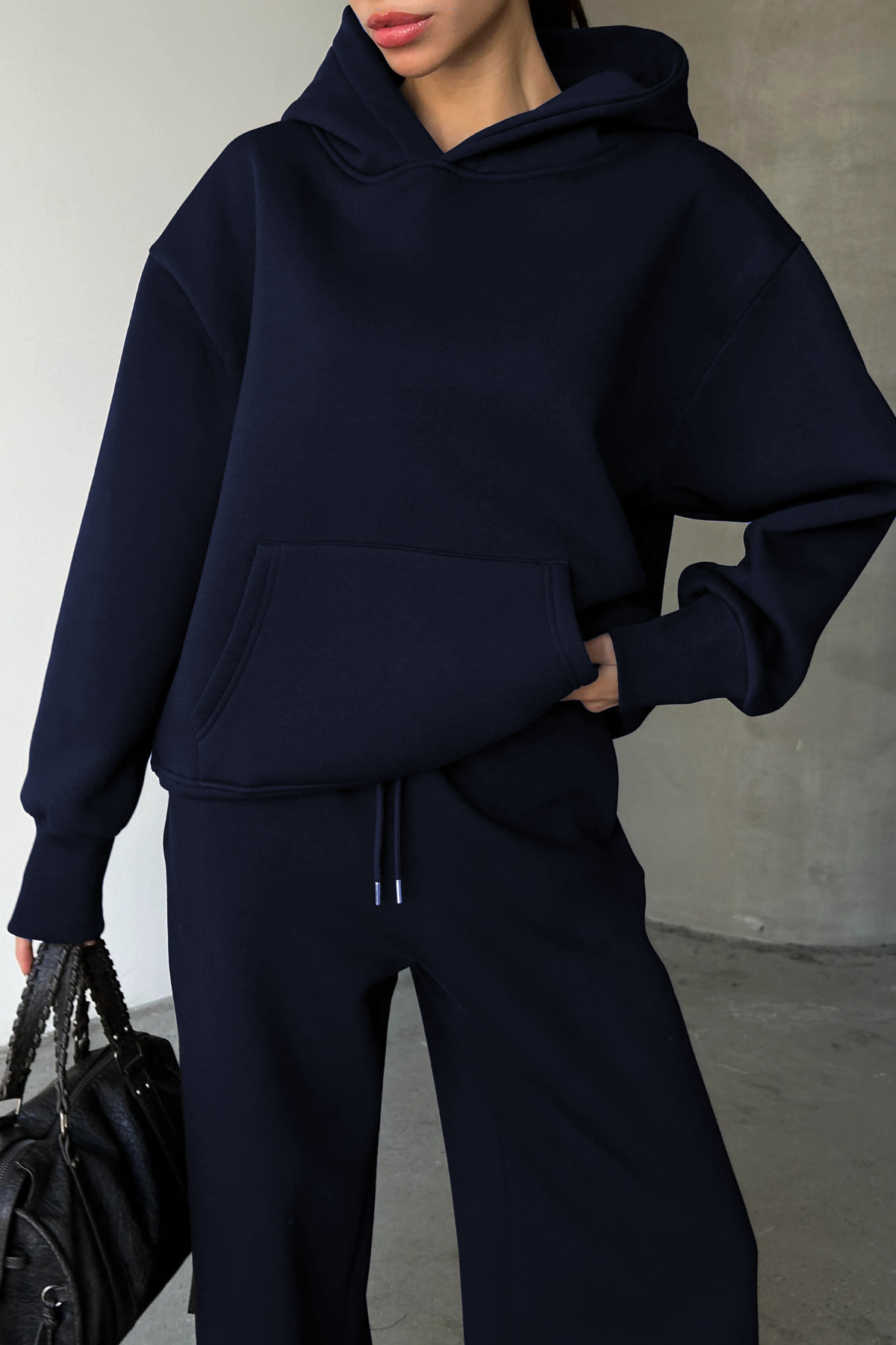 - Sweatshirt ve eşofman altından oluşan takım, pratik kombinler için mükemmel bir seçenektir.
